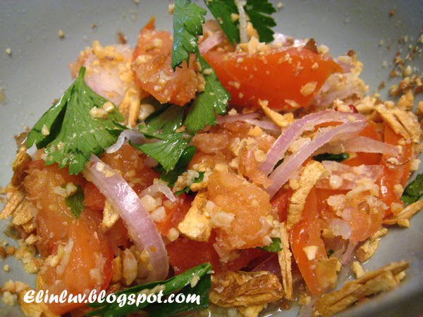 And tomato salad looks like this, which can also be vegetarian (Without fish sauce).