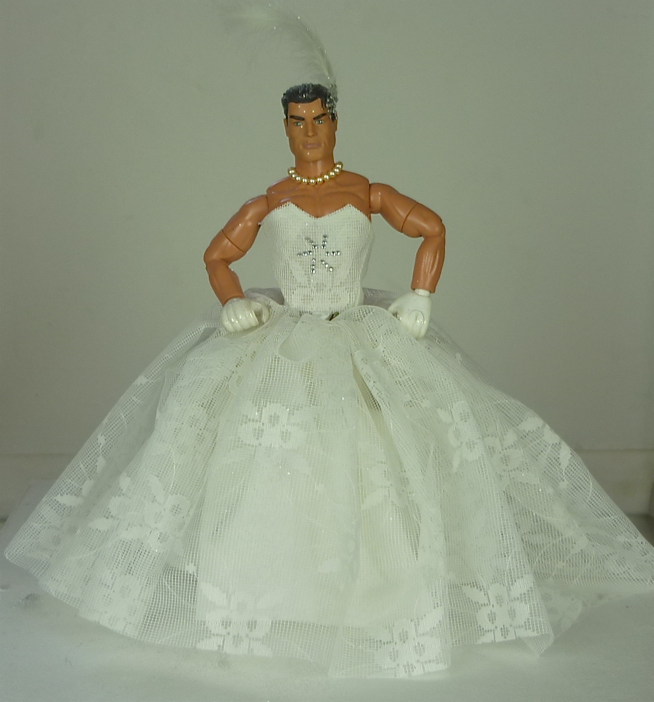 I'm so sorry... I really thought it was going to be a mickey-take when she came striding out... the bustle is way too high and she reminds me of the doll on the loo roll...